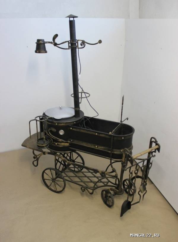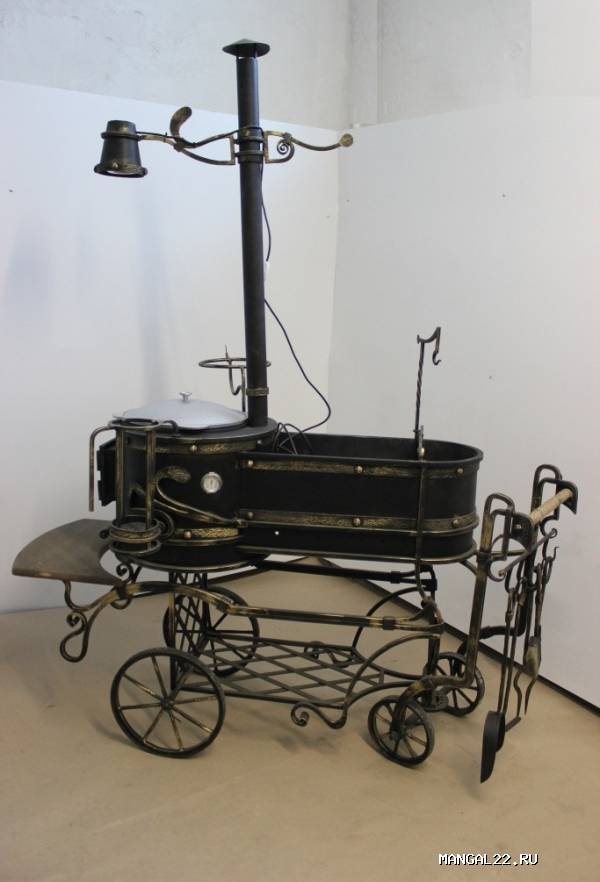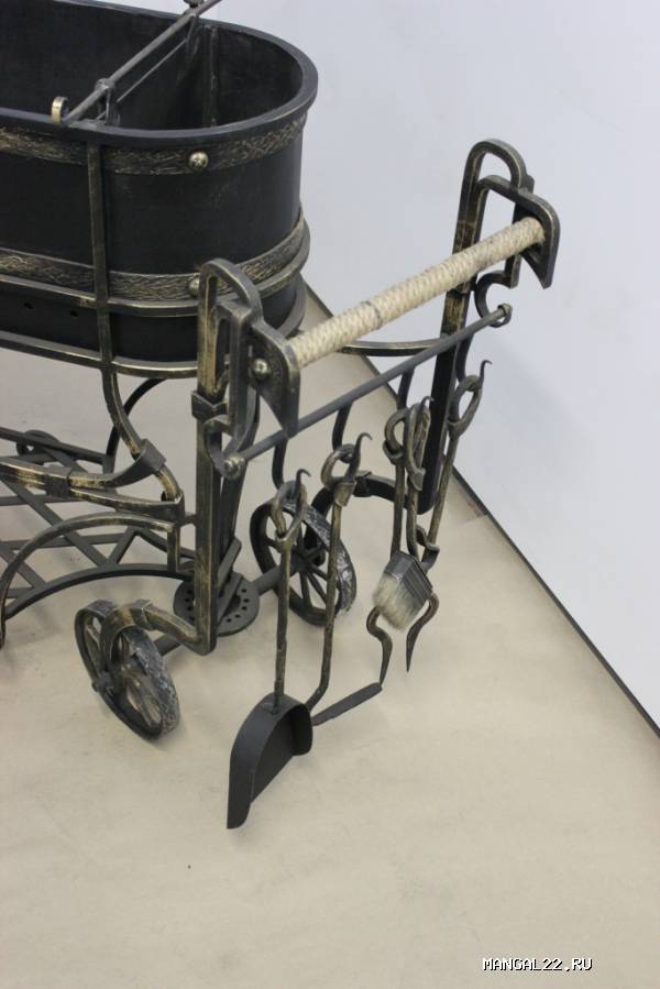 светильник, стакан для шампуров, подставку для казана и подвес для котелка.