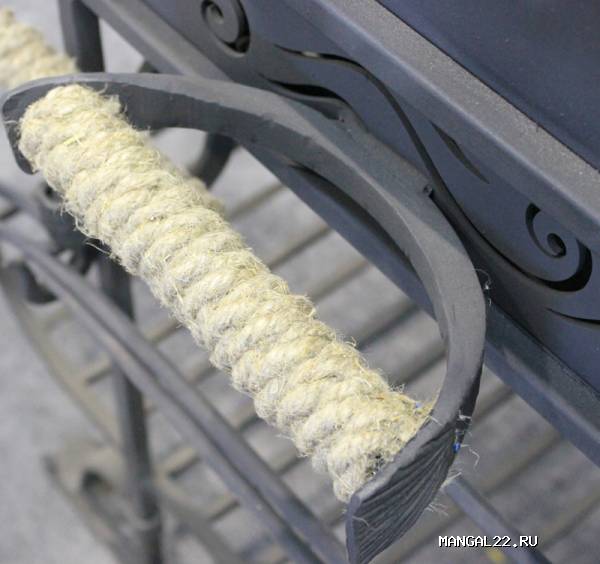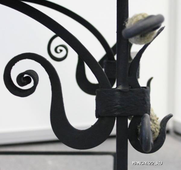 Изготовлен из стали, толщиной 3 мм. на жестком каркасе и цельного металлического квадрата, с применением лазерной резки и горячей ковки. Покрыт черной, матовой, жаростойкой краской.